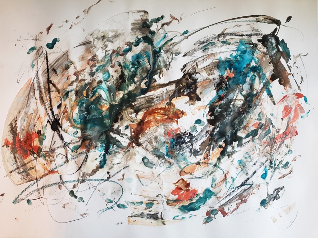 Mixed Media: Ink, pastel, and acrylic on paper (18×24 in) $75.00 USD. SOLD