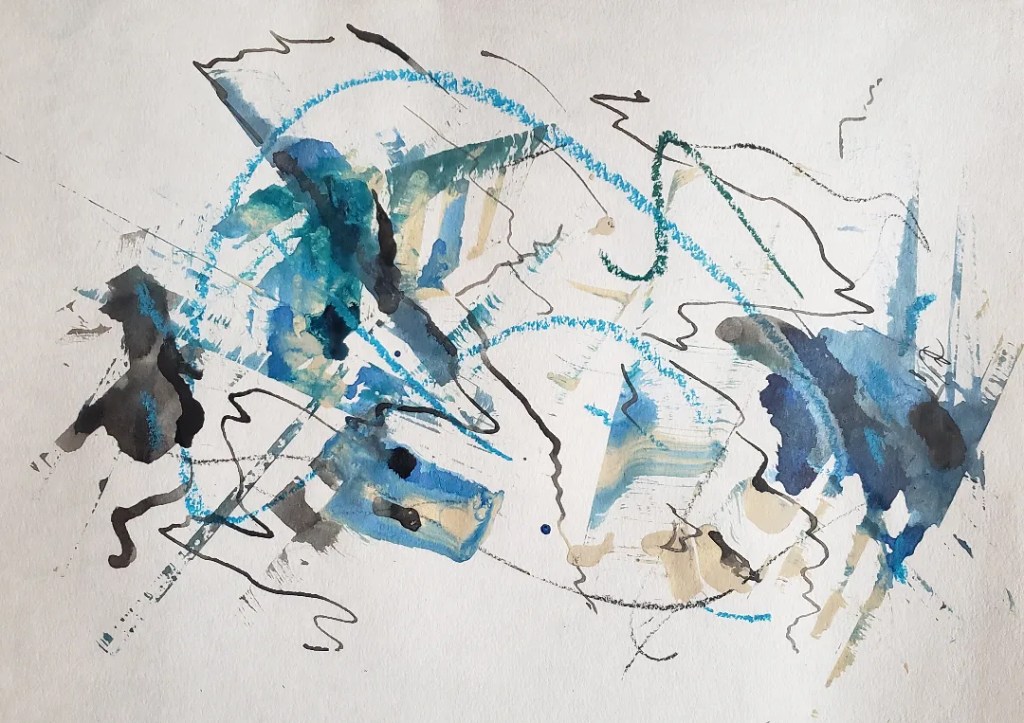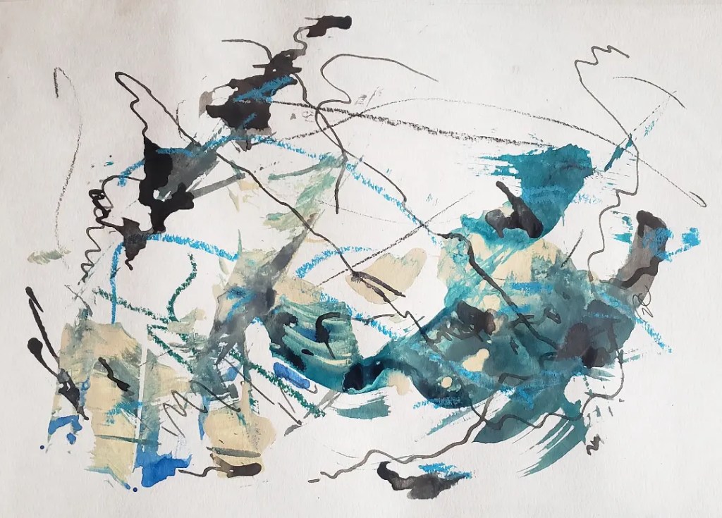 Mixed Media: Ink, pastel, and acrylic on paper (12×8.75 in) $50.00. SOLD